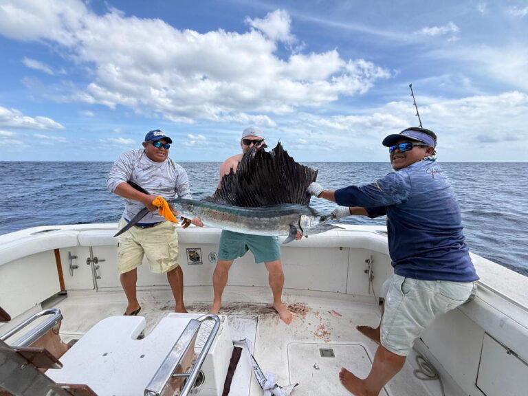 Report: The magnificent sailfish are here in Puerto Aventuras, Riviera Maya, creating thrilling opportunities for the whole family. Fun fact: These impressive hunters are among the fastest fish in the ocean, a spectacle to witness firsthand in our waters! Contact us and book your charter today for a fun day out at sea with our Pescado Adventures crew.